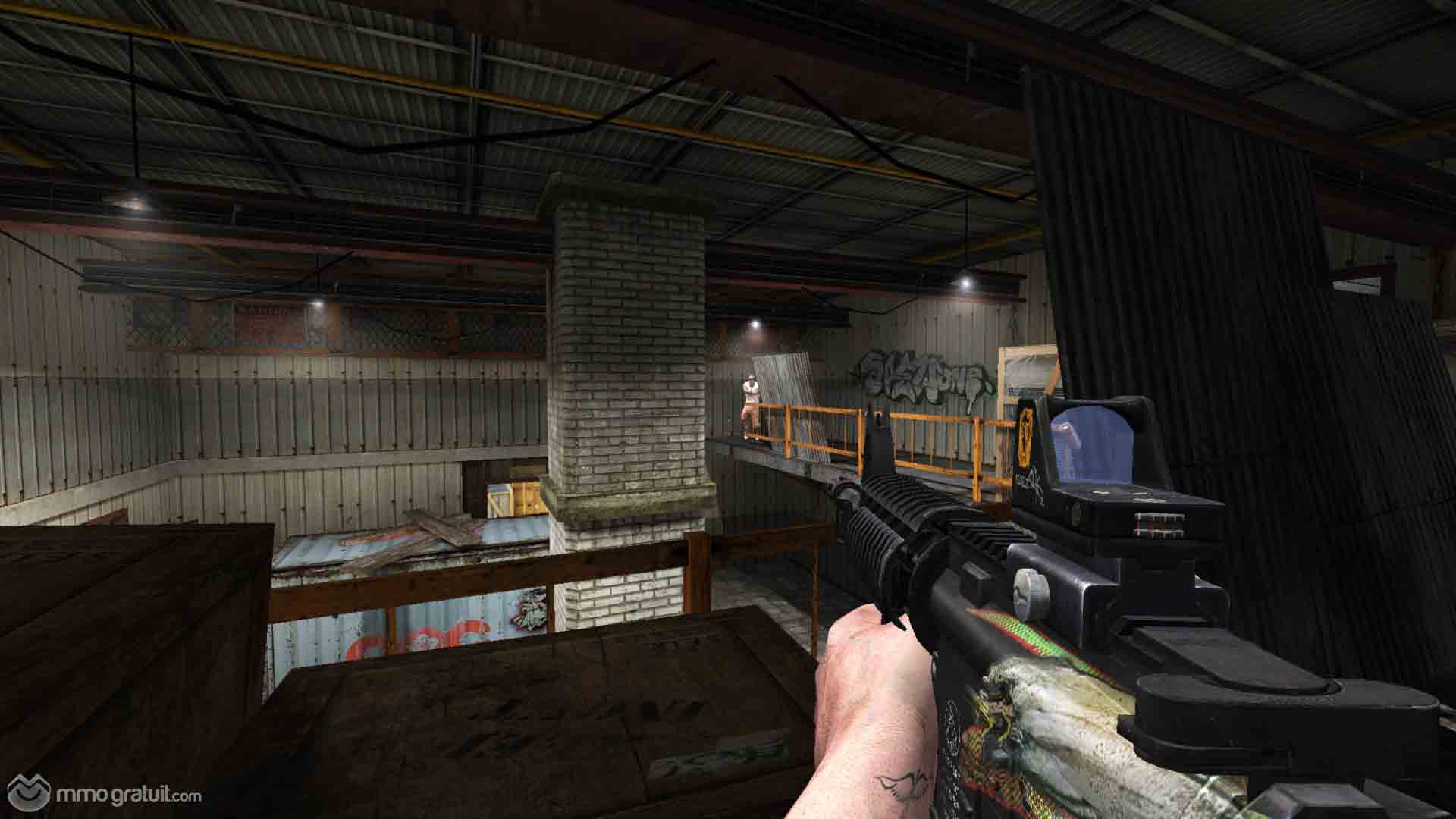 Eh bien, nous aurons Civic Center, The Docks, The Ghetto, The Slums, The Bank, The Sewers, The Factory, SS Steuben, Haven, Wolf & Pig, Downtown et The Slums (Nuit). Ce qui fait douze cartes dès le lancement. En termes de modes, nous avons pour l’instant Scramble, Bomb, Round et Team Deathmatch, et pour le lancement nous allons ajouter un mode Boss avec la carte Wolf & Pig. Mais nous en reparlerons le moment venu…